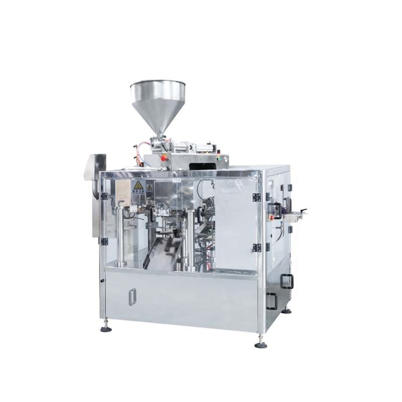 Questa macchina è progettata per sacchetti preformati realizzati con film compositi multistrato, sacchetti di carta e materiali simili. Il dispositivo di alimentazione automatica dei sacchetti è dotato di una larghezza regolabile tramite maniglia per rapidi cambi di specifiche dei sacchetti. Tutti i componenti a contatto con il materiale sono costruiti in acciaio inossidabile e altri materiali per uso alimentare per garantire la sicurezza e la conformità igienica.